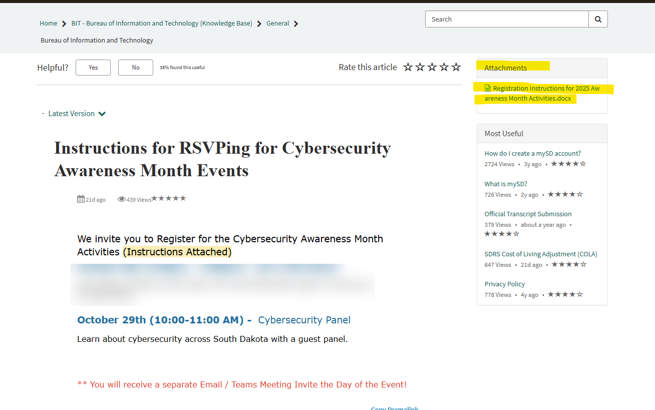 Instructions for RSVPing for Cybersecurity Awareness Month Events