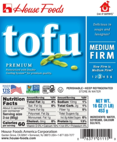 • 1 dozen eggs = 1 lb of tofu